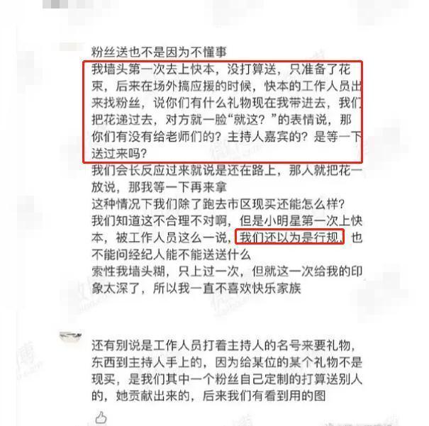 起因是何炅上节目自曝收到了不少明星粉丝送的礼物,结果网友顺杆开始扒,发现快乐家族这么多年来,收了不少礼物,明星粉丝以“应援”的名义,争相给主持人送礼,为了确保自家偶像被优待照顾,甚至出现了大量高价礼物,其中还有金条,此事瞬间引爆舆论。