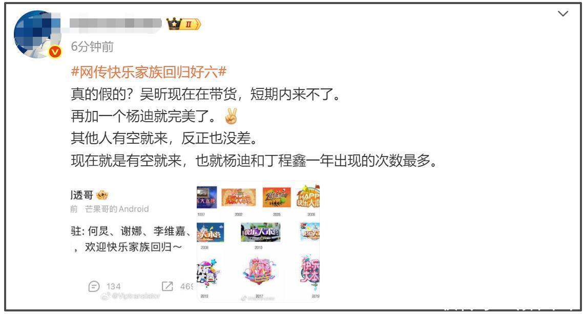 对此,网友的反应果然很激烈,看法各不相同。有支持快乐家族回归的,直言现在《好六》硬拉剧宣梗还无聊,不如快乐家族放得开。